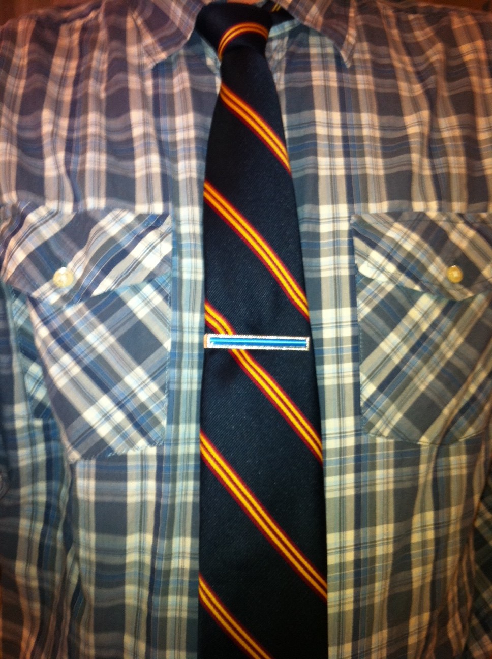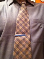 I start out, rather fittingly, with this tagless striped strip. I am pretty sure I got it from my friend Paul Giddings’ collection. I’m also pretty sure that Paul never put it with a plaid shirt. Hmm, not sure this works…good thing I can’t wear this tie again.