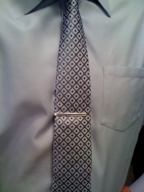 So, for my Tie du Jour (I always have to stop myself from writing “for today’s Tie du Jour”–Redundancy! Halt thee thyself!), I had to go with something I knew would work. So I quick-picked this tie/shirt combo that I’ve worn two-three times in the past.