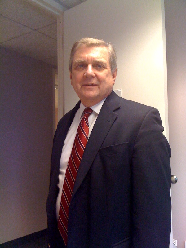 Well, I’m back in the Guys With Ties game. Larry Widmayer, a commercial realtor with Koenig & Strey in Evanston. He’s on the board of the Chamber, and was sporting this nice red tie w/blue & white stripes while visiting Chamber HQ today. I’m sure he was inspired by reading about Red Tie Week, oh those weeks ago. Good times.