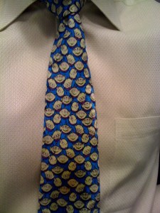 Of course I could have–should have, really–gone into the day sans tie, but my mind projected itself upon the days (weeks, months) ahead, and I tried to figure out which tie I could wear with a bunch of 9-yr olds hanging around. Since those 9-yr olds and their randomly-functioning brains are much like aliens, I thought of this tie almost straight away.