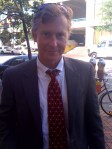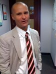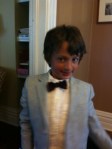 A little on wearing the striped tie over a striped shirt. One can get away with it, as long as either the shirt or tie has diagonal stripes, and you don’t really want the pattern to be too similar. No perpendicular tie-to-shirt action, or pinstripe over pinstripe. This tie could have popped off of a plain white shirt, but that’s not really me; I think it jumps out rather nicely here, with this understated striped Perry Ellis shirt.