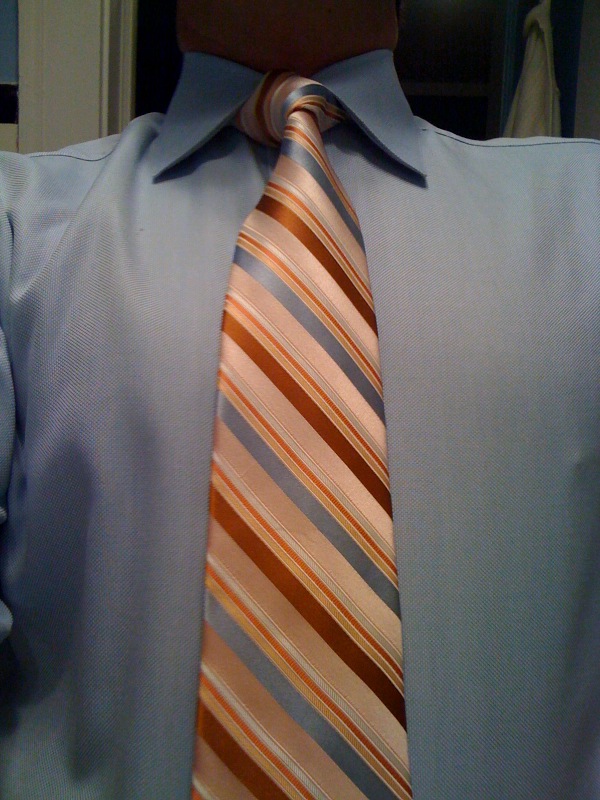 Oh, yeah, my striped tie for the day…it’s a peach/pink and blue and brown number from Calvin Klein that I picked up a couple weeks ago at TJMaxx. I love the blue in here, perhaps because it’s squeezed in between the other colors.