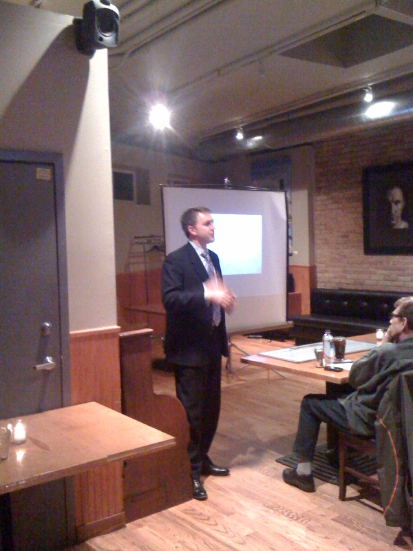 Captured a Guy With Tie, although now that I think about it, he may be a GWT alum. Scott Whitaker is head of the Kellogg Entrepreneurship Internship Program over at Northwestern’s Kellogg Graduate School of Management. Very hazy picture, very nice guy. My friend Chris and I ran into him before he was to judge an entrepreneur contest for NU students.