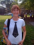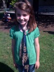 And, ding-ding-ding! We have our first Girl With Tie, officially. There was a Girl With Guy With Tie, Billie Kershasky, but now it’s a real Girl With Tie, with her own category and everything. Elena, one of my daughter’s classmates, sported this great strip to school, which has little faces making up a map of the world. Her mom shared something with me that I took as a great compliment…Elena said, “Mom, when I grow up, I want to be just like Brooke.” High praise, indeed! Psst, Elena, the best part about being like me is that you don’t really HAVE to grow up.