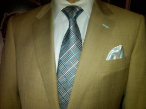 Let me explain my costume. I’m a Blind Date. Wearing a coat and tie, of course, but, being blind, nothing matches. Plaid coat, paisley shirt, luau-print pants and, to top it all off, my cotton floral electro-strip of a Tie du Jour from Vivace. Do not adjust your computer screen. Sunglasses may be advisable. And I promise that I will always ask permission before wearing a similar outfit again.