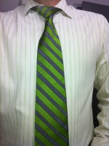 Since my memory is not as good as it was since before I can remember, I’m changing things up here. I mentioned in my last post that I have 18 ties to write about, and I can’t keep letting weeks (oh, ok, months) go between wearing and writing about ’em. There are just too many things that are going on in life, and I want to make the posts timely. So, this post will actually be for a tie that I wore today; I’ll probably post about a past tie tomorrow, or on a day that I don’t wear a tie. Must. Catch. Up.